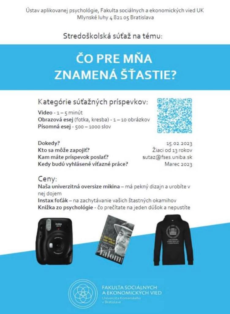 Viac informácií: Share this: Click to share on X (Opens in new window) X Click to share on Facebook (Opens in new window) Facebook Like Loading... Related Stredoškolská súťaž na tému: Čo pre mňa znamená šťastie? January 11, 2023January 11, 2023 / simihoran / Leave a comment